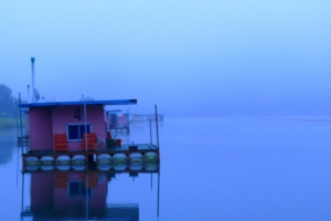 물안개 자욱한 고탄낚시터 새벽녘 전경 |