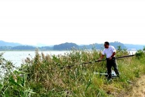 | 동행출조를 한 부람스님이 생자리에 수초작업을 하고 있는 모습 |