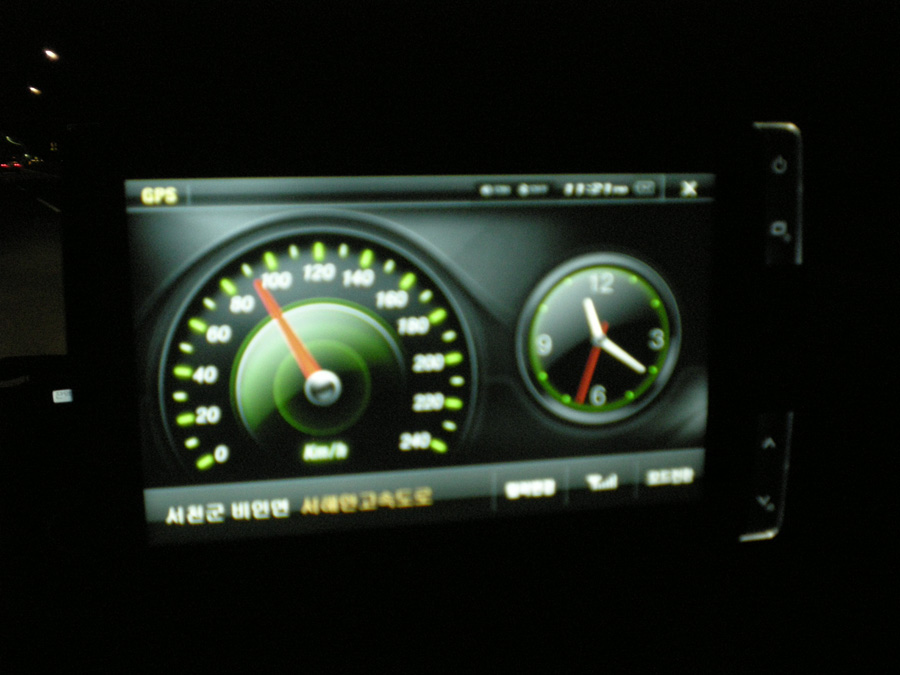 필자의 최신 네비게이션... 11시가 넘은 시간 서천을 지나고 있네요. |