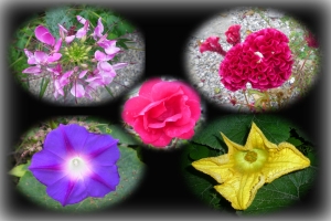 | 오늘의 또다른 조과... 나팔꽃, 장미꽃, 족두리꽃, 호박꽃 그리고 ??이름모를 꽃 |