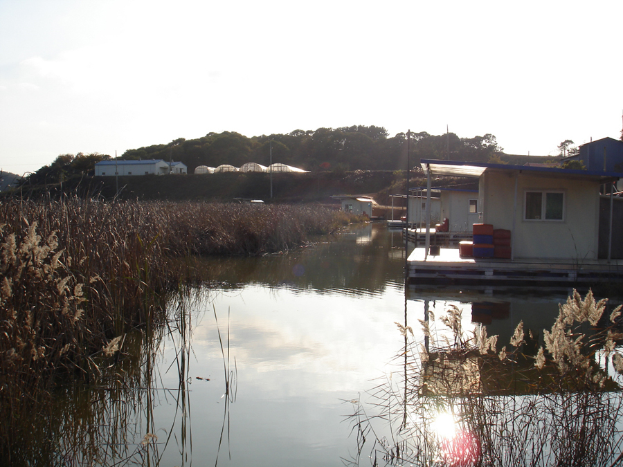 관리소앞 좌대 모습 |