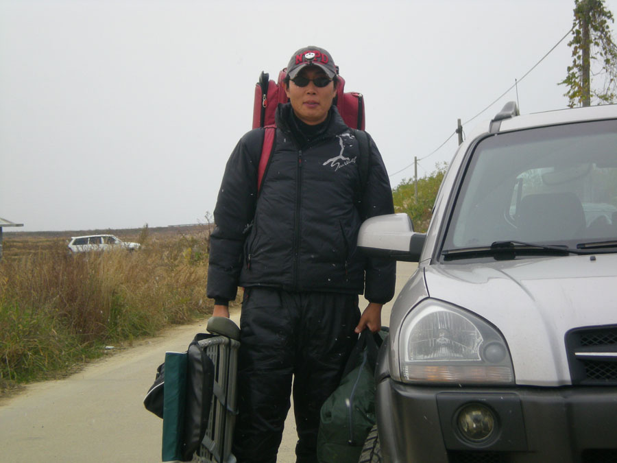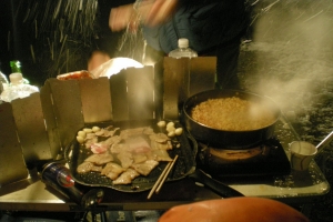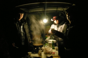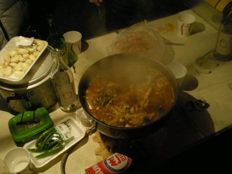 눈보라속에 삽결삽과 라면으로 추위를 녹여보지만... |