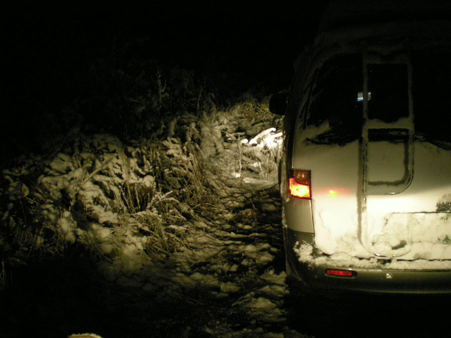 이렇게 눈이 쌓여 밤 12시 철수를 감행했습니다. |