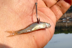 아침에 한번의 입질을 위해서 참붕어로 다시 미끼를 바꿔 봅니다. |