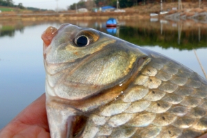 | 아침에 한번의 입질을 위해서 참붕어로 다시 미끼를 바꿔 봅니다. |