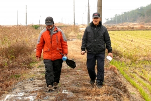 바닥이 들어난 둔덕에 대편성을 했습니다. |