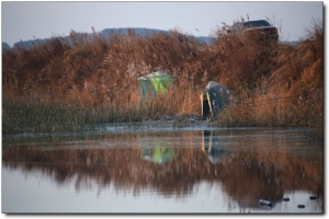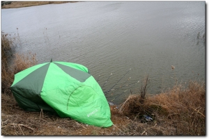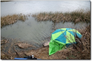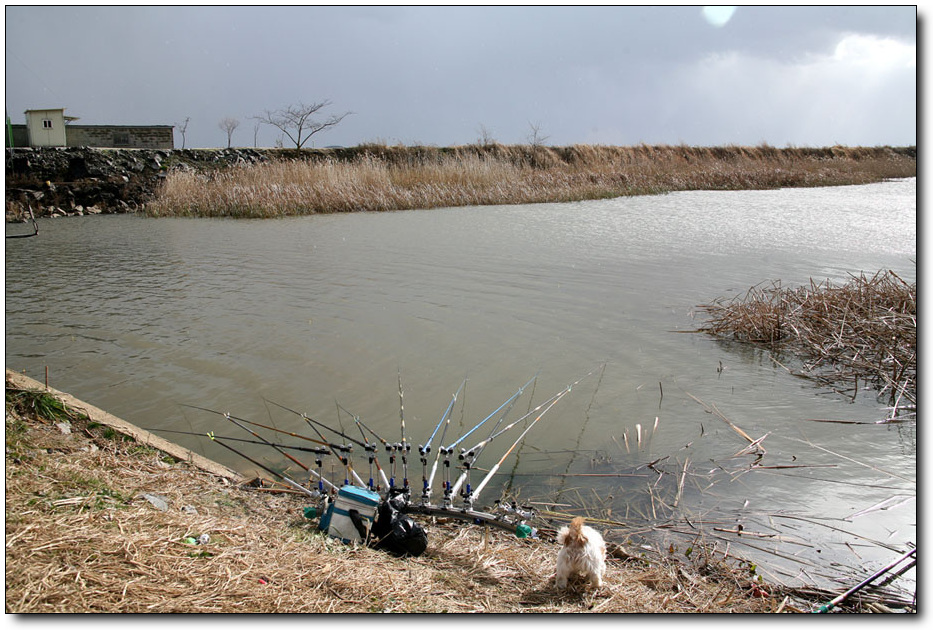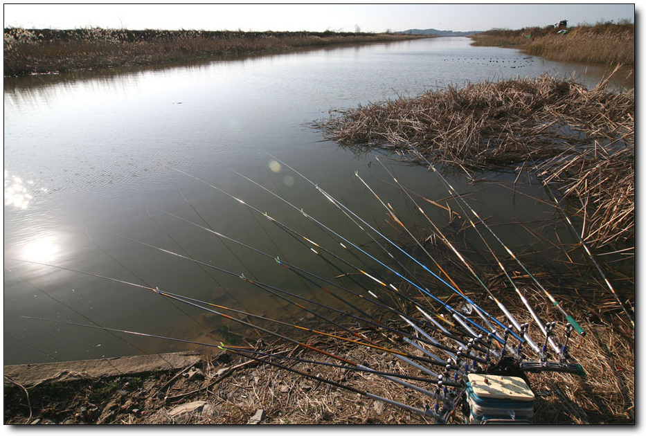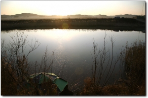 | 그래도 주력 낚싯대들은 모두 맨바닥 수심 1미터권으로 집중시켰고 40대 두대는 오른쪽 부들 너머로 넘겨쳐보았습니다. |