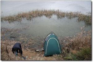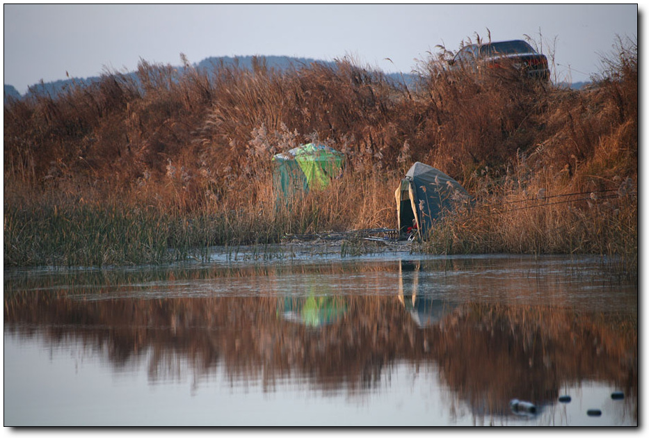 | 제법 두꺼운 살얼음이 얼어 낚시 불가. |