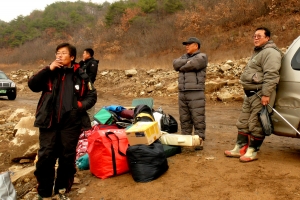윤교수님은 돌무더기 옆 수심 깊은 곳으로 옮겼습니다. |