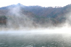 | 겨울을 실감나게 하는 물안개 입니다. |
