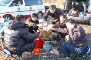 | 추위에 밤을 지새우고... 아침이 밝아 옵니다. |