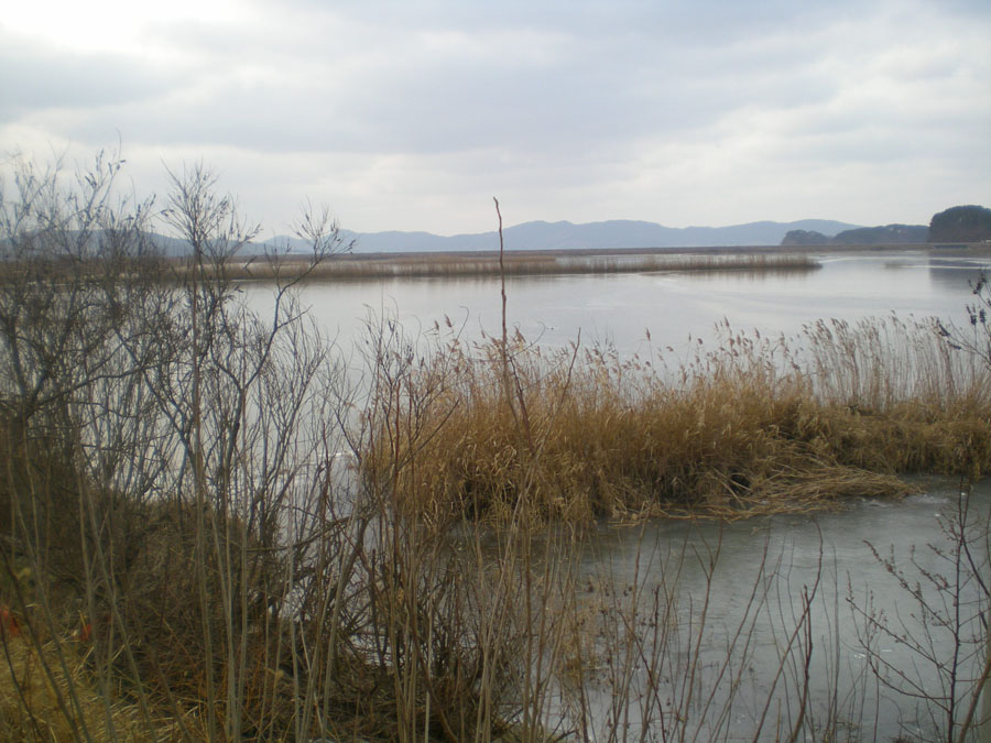 닷개지 중앙에 웬 정자가 있네요. |