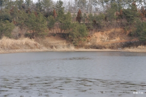 영상기온과 겨울비로 인해 해빙된 소류지에서 대편성을 합니다. |
