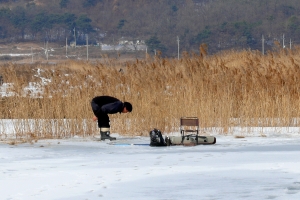 | 봉봉님이 얼음 구멍속을 답사하고 있습니다. |