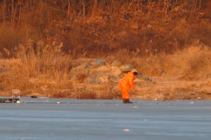 주말팀 콩밭님이 수심을 체크하는 모습 |