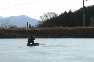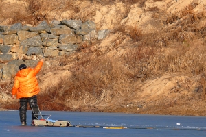 | 주말팀 콩밭님이 수심을 체크하는 모습 |