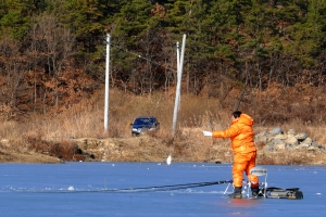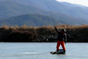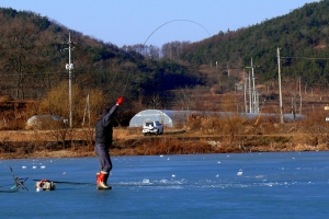 | 기축년 새해에 첫 붕어를 걸어 내는 콩밭님입니다. |