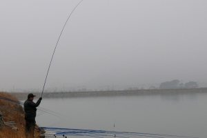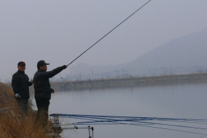 | 서쪽제방에서 물낚시를 하는 사람들이 몇명 있었습니다. |