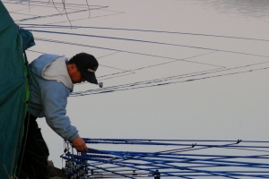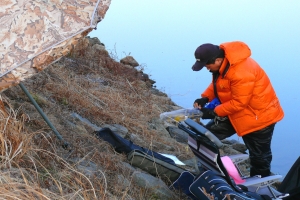 | 쌍칼잽이님도 물낚시에 첫 수를 걸어 냅니다. |
