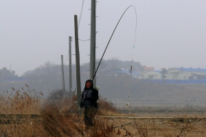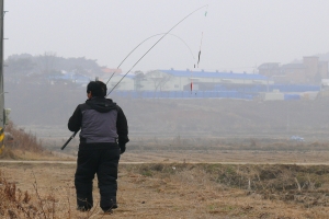 | 준척급을 걸어 낸 윤교수님의 낚시 모습 |