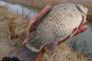 윤교수님이 걸어낸 준척급 붕어입니다. |