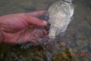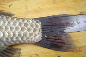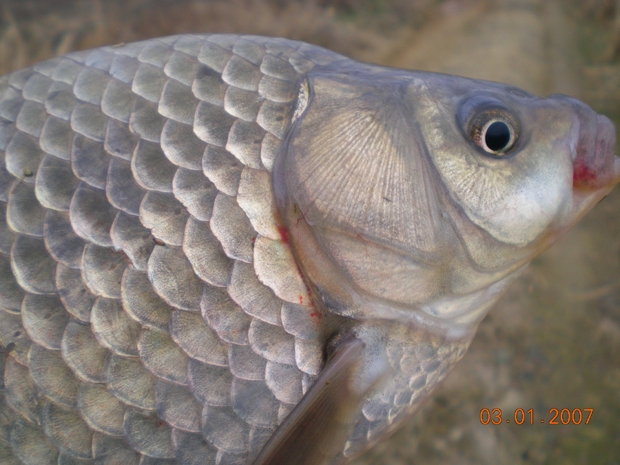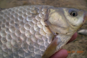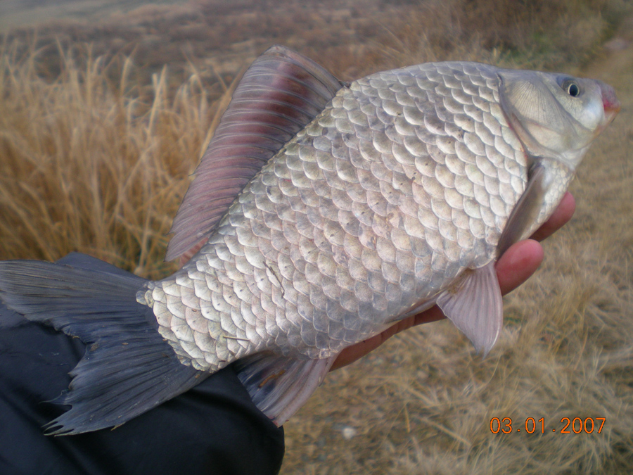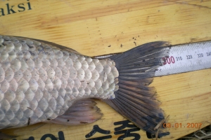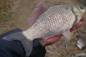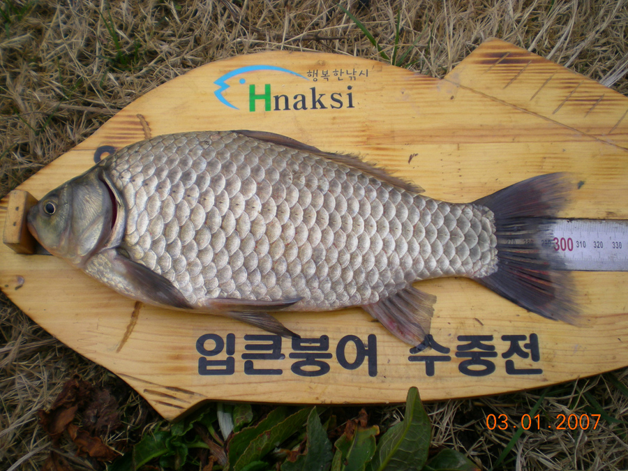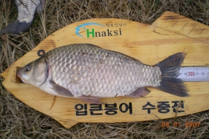 | 필자가 잡은 턱걸이 월척급 붕어 |