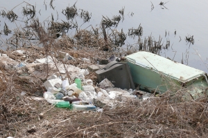 각종 쓰레기로 몸살을 앓고 있는 남양호입니다. |