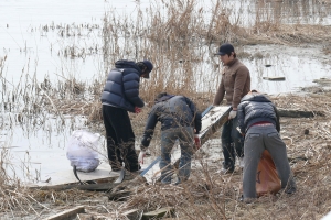 한마음 한마음이 푸대속에 모두 수거되고 있습니다. |
