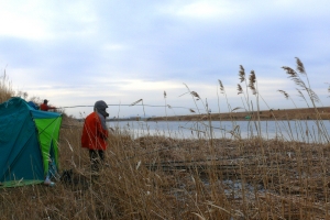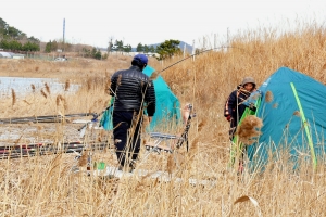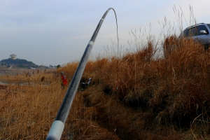 | 강한 바람속에서 구찌님이 채비 준비 중입니다. |