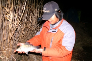 구찌님이 밤에 걸어낸 32센티 월척급 붕어입니다. |