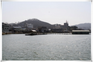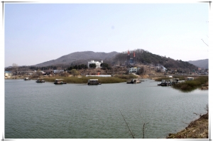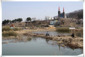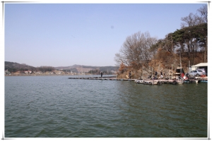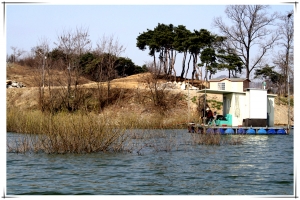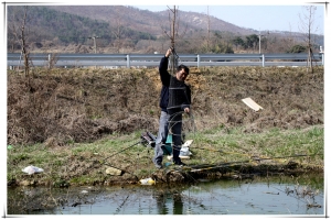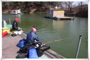 | 뱃터에서 산밑으로 연결된 접지좌대 (수심 4미터권) |