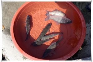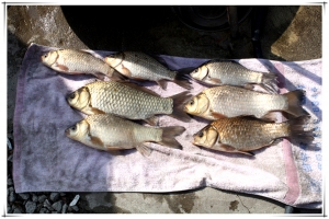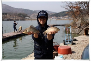 | 모델을 자청하신 조사님께서 월척급 붕어를 양손에... |