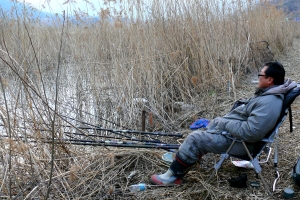 | 갈대 수초가 잘 분포되어 있는 곳에 낚싯대를 편성했습니다. |