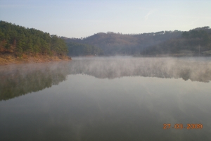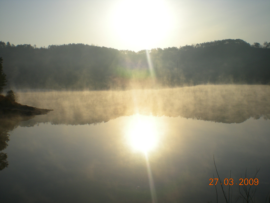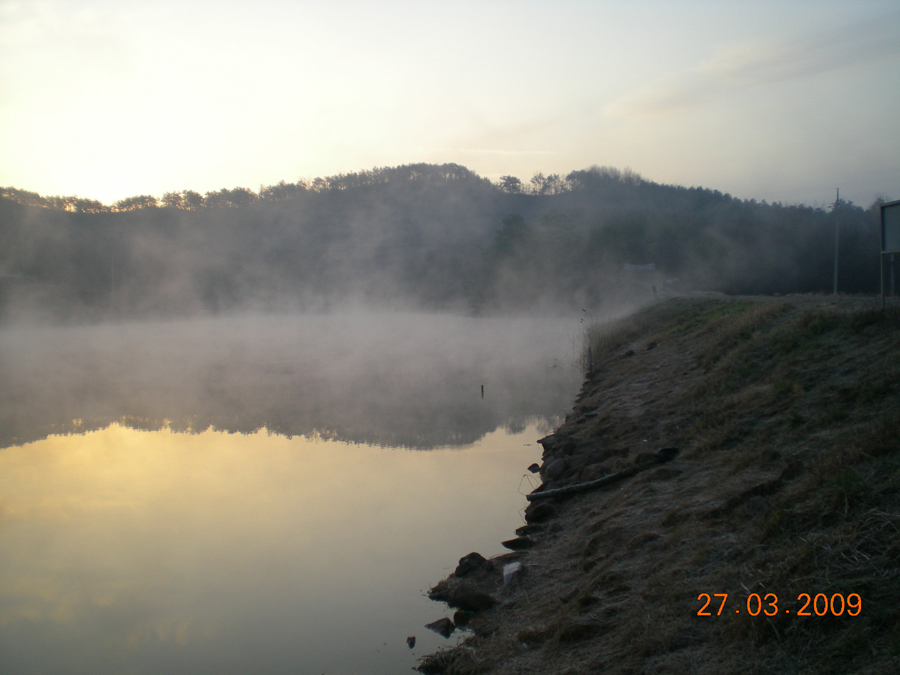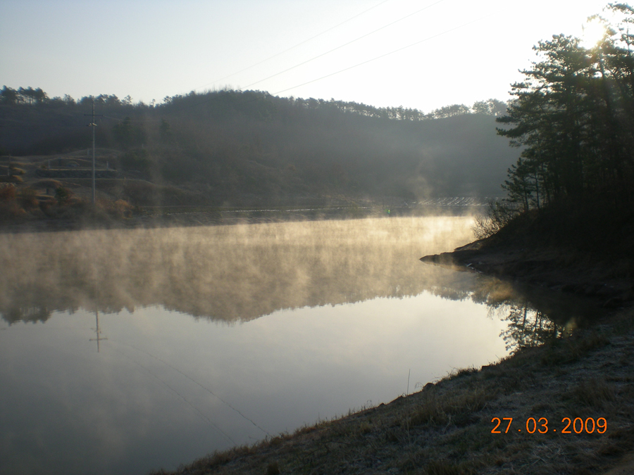 | 강렬한 태양빛에 물안개는 걷혀가고... |