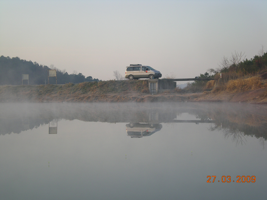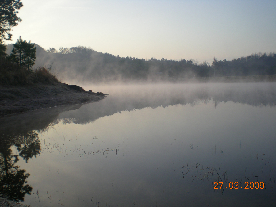 강렬한 태양빛에 물안개는 걷혀가고... |