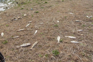 배스와의 치열한 전투흔적... 지렁이 6통을 사용했습니다. |