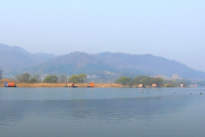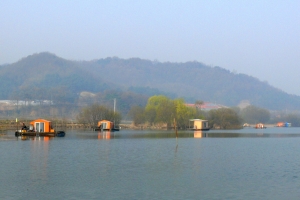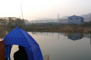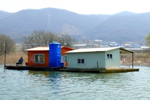 안골지 상류 좌측편에 위치한 수상좌대들 모습 |