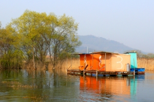 | 수몰나무앞에 위치한 수상좌대 모습 |