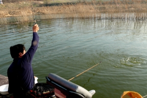 | 중류권 갈대 포인트 앞에 위치한 수상좌대 모습 |