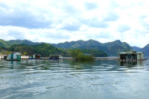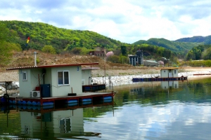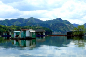 | 의암댐 자갈섬 낚시터 관리소 좌측편 콘도형과 팬션형 좌대 전경 |