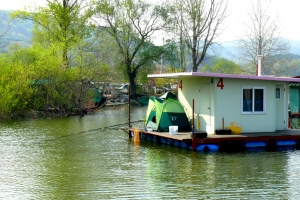 자갈섬낚시터가 자랑하는 콘도형 수상좌대의 멋진 모습 |