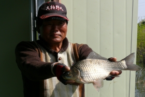 | 멋진 붕어를 들고서 한 컷 찍어 보았습니다. |