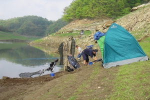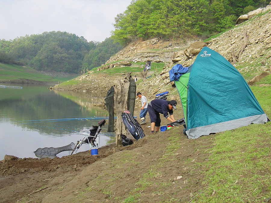 | 낚시하기 편한 자리에 텐트도 치고... |