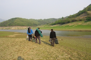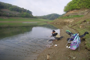 | 대바기님 자리를 이어받아 물이 약간 빠진 관계로 낚시자리를 정리하고 있습니다. |