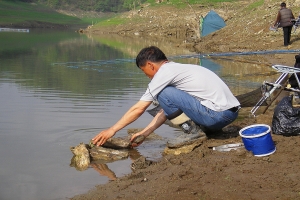 대바기님 자리를 이어받아 물이 약간 빠진 관계로 낚시자리를 정리하고 있습니다. |