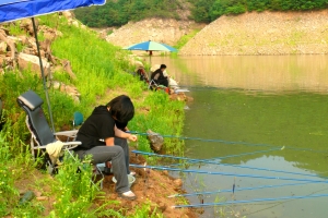 | 아침 햇살에 눈이 부셔 찌가 보이지 않나 봅니다. |
