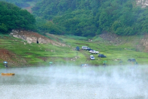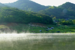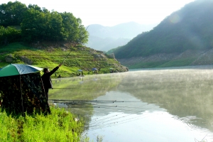 | 물안개 자욱하게 피어 오르지만 입질은 없습니다. |