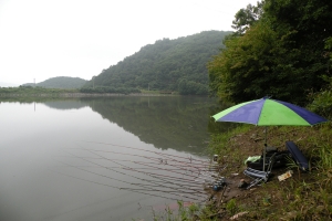 | 낚싯대만 밤새 홀로 자리를 지켰습니다. |