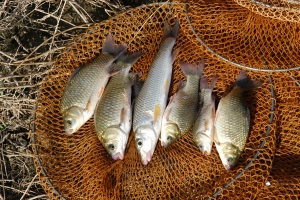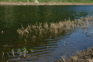이렇게 연안 수초대 사이에서 붕어들이 나옵니다. |