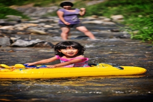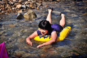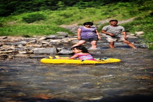 | 민서는 쥴리님의 래프팅에 신나게 빠져 있습니다. |